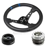 NRG-SRK-181H+016R-BK+200SL, NRG Innovations 13.78" 350mm 3" Deep Dish Style Black Leather Blue Center Marking Racing Steering Wheel Combo with 6 Hole Short Hub Adapter with Gen 2.0 Silver Gold Quick Release Kit SRK-181H