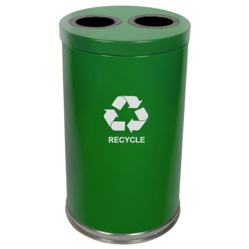 Dual opening container that is perfect for multi-stream recycling, waste or co-mingling of recyclable items. Complete with 2 half-moon rigid plastic liner and various decals. Diameter:18 Height: 33 Weight: 28Capacity in Gallons: 20 Material: Steel Color: Green in/out: Indoor" Sold Individually (IMPORTANT) SHIP TIME: 5 days Please note: If there is a color/size/type option, the option closest to the image will be shipped (Or you may receive a random color/size/type).