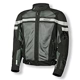 Olympia Mens Black/Pewter/Silver Renegade Mesh Tech Jacket (M). Our Renegade jacket offers a unique combination of retro yet modern styling making it perfect for just about any riding style. Despite its competitive price, no substitutions were made when selecting key safety components for this style. Like all our gear, the Renegade is cut in a combination of authentic Cordura® fabric with ballistic nylon mesh panels for maximum airflow and superior abrasion resistance. It also comes fully equipped with our articulated CE armor at the shoulders, elbows and back. 3M reflective trim adds additional safety in low light situations. Outer shell constructed in 500 denier Cordura® fabric with ballistic airflow mesh panels / Removable CE approved Motion Flex armor at elbows and shoulders / Removable CE approved Motion Flex articulated back protector / Cool mesh airflow lining / Custom Fit detailing at collar, cuffs, elbows and waist / Comfort neoprene framed collar / 3M Scotchlite® reflective piping at front, sides and back / 8" connecting zipper for pants / Two storage pockets plus interior cell phone pocket.